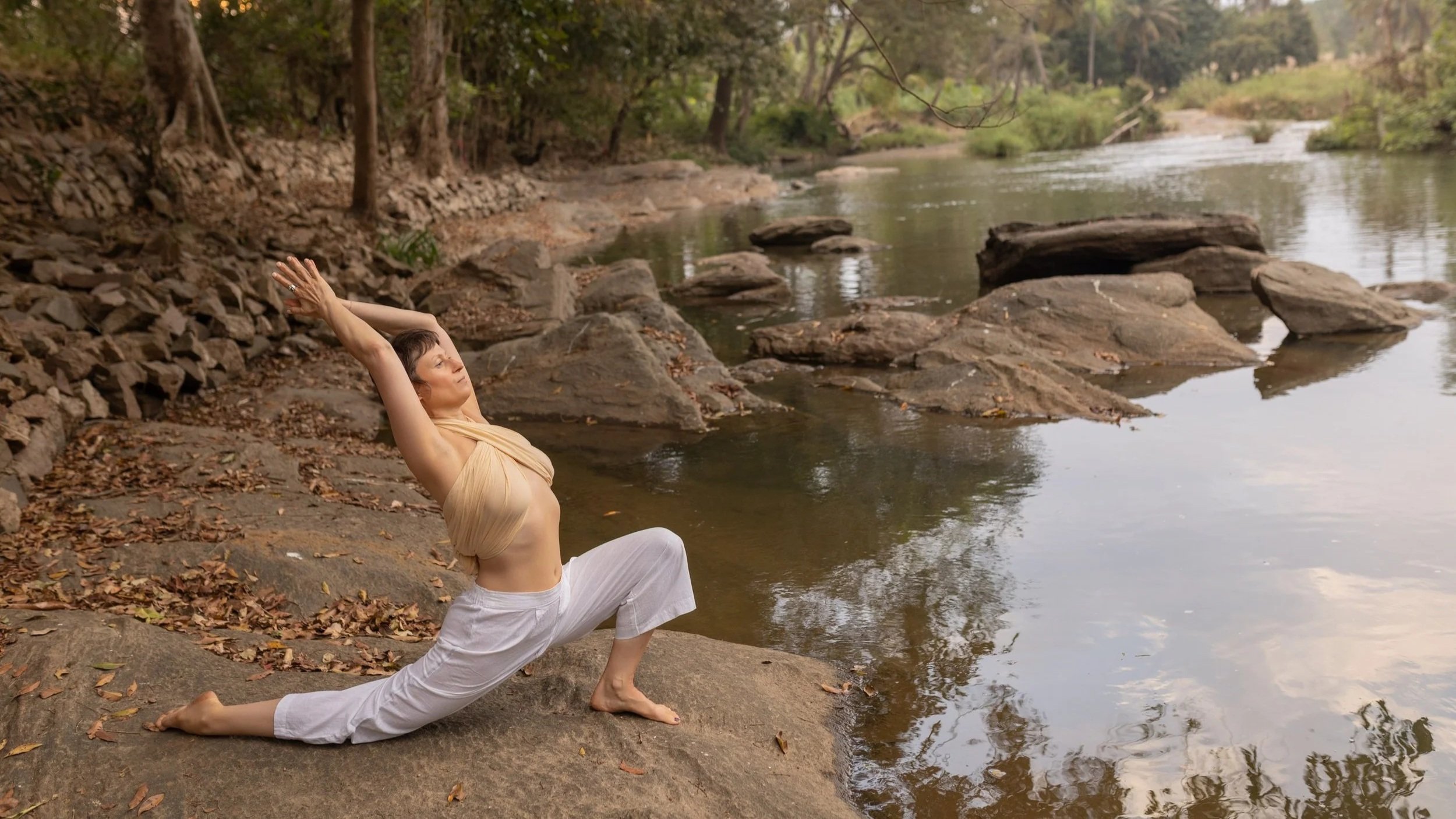 The second part softens you inward — slowing the breath, opening the hips, and settling the mind without draining your energy.